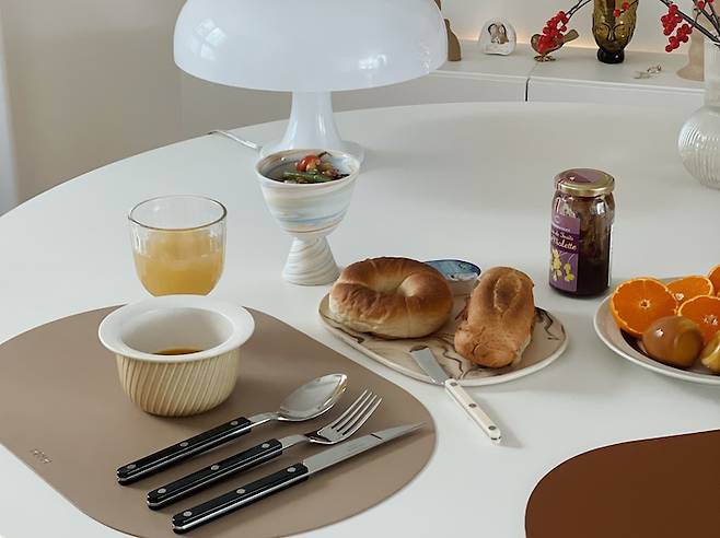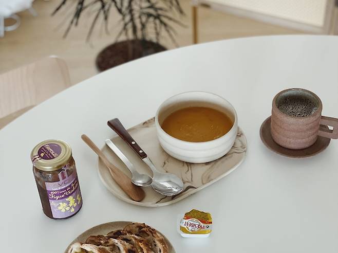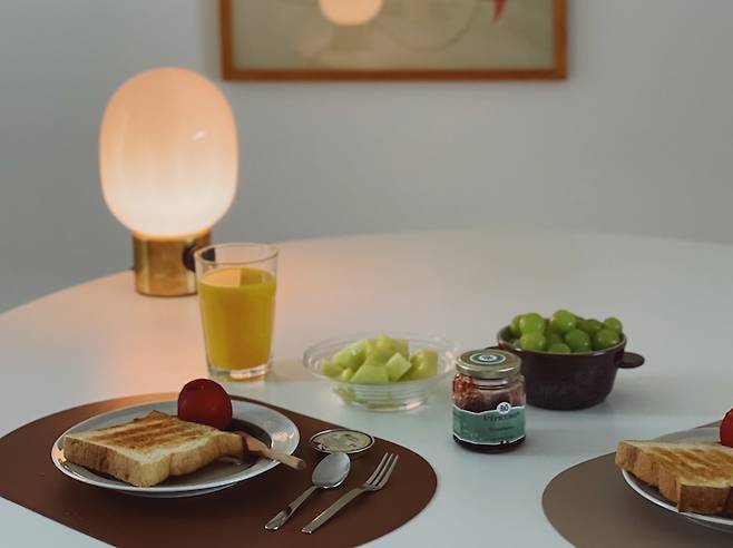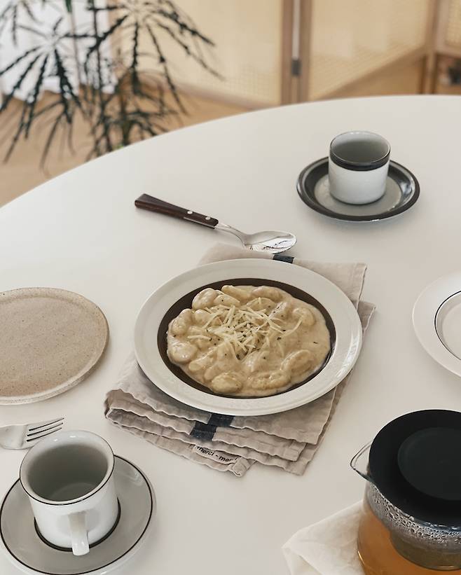 집에서 음식을 많이 해먹는 편이 아니라 보통은 간단하게 차려서 먹으려고 해요. 도자기 만드는 것을 좋아하는 만큼 예쁜 도자기들을 모으는 것도 좋아해서 제가 만든 도자기나 구매한 예쁜 그릇에 담아 먹습니다.