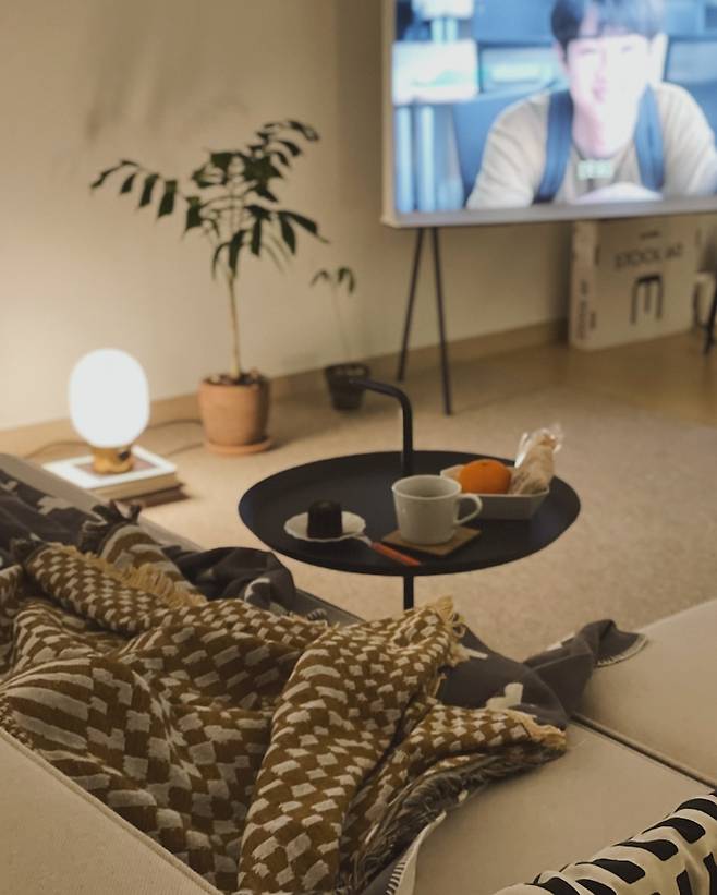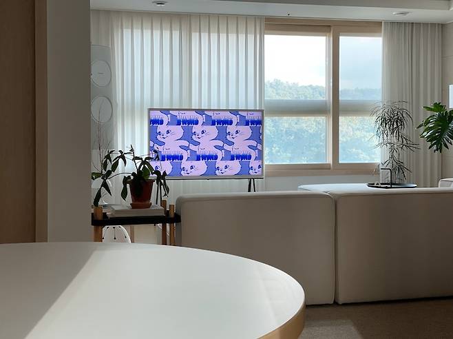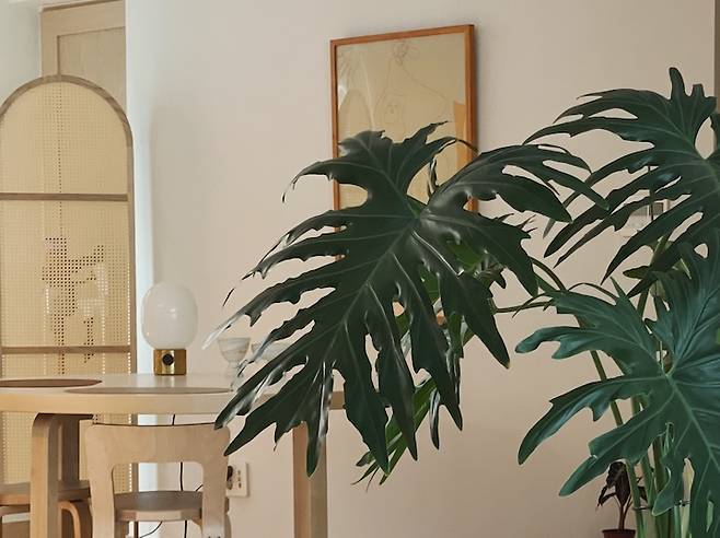 세리프 티비도 여기 저기로 옮기기 좋아 구매를 잘한 것 중 하나에요. 군데군데 식물들도 놓여져 있어요. 가구들을 먼저 옮기고, 잘 어울리는 위치에 식물들을 배치해 줍니다.