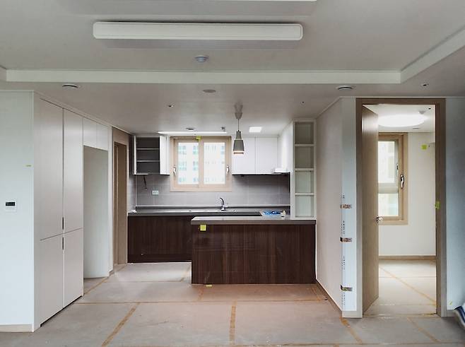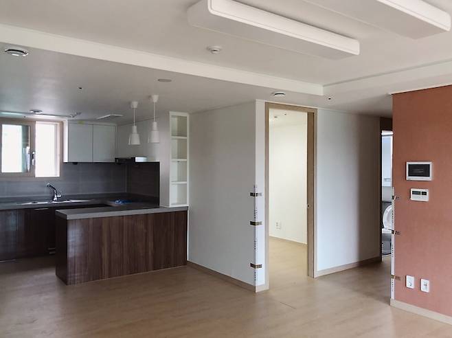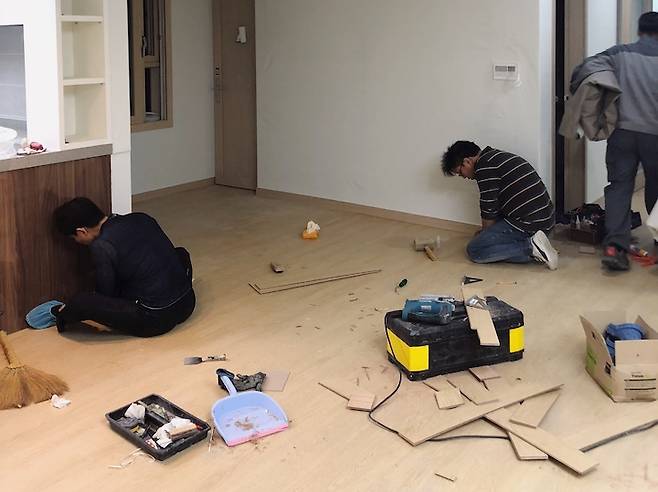 벽 없애기, 보일러와 전기 스위치 옮기기, 도배 다시 하기, 마루 철거하고 다시 깔기 등... 집 전체에서 작은 부분이라고 생각했는데 생각보다 큰 공사였던 것 같아요. 마루는 벽을 철거하고 뜯겨진 부분만 채우는 간단한 건 줄 알았는데... 마루를 주방까지 싹 다 뜯어내고 새로 다시 깔았어요. 너무 큰 일을 벌인 것 같아 걱정이 많이 됐었는데 그렇게 한 덕분에 자연스럽게 시공이 잘 되었어요.