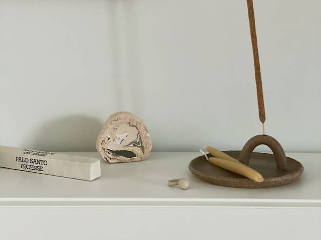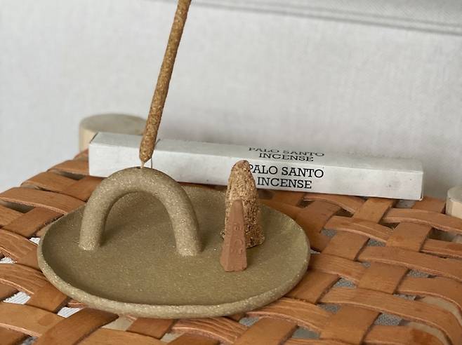 인센스 홀더는 제가 향을 좋아해서 만들게 된 작품이에요. 작업실 공간이 넓어서 인센스를 피워 놓으면 좋은 향과 함께 공간도 아름답게 채워지는 기분이들어요. 그래서 작업을 할 때나 집에서 리프레시가 필요할 때 인센스를 피우면서 즐깁니다. 음식향이 강한 요리를 하고 나서 인센스를 피우면 금방 냄새가 사라져서 좋아요. 인센스를 피울때는 꼭 창문을 살짝 열어놓고 환기가 가능한 상태에서 즐기세요!