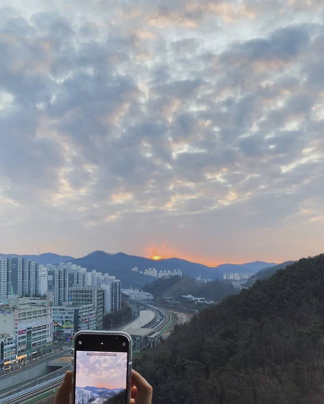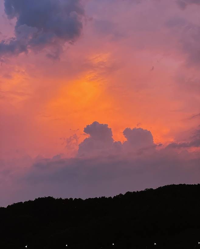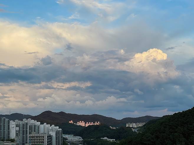 저희 집 거실 창밖 풍경이 시야가 탁 트이고 막혀있는 곳이 없어 뷰가 좋은 편이에요. 가끔씩 창밖을 보면서 시시각각 변하는 구름이나 하늘을 보며 멍하니 보내는 시간을 좋아합니다.