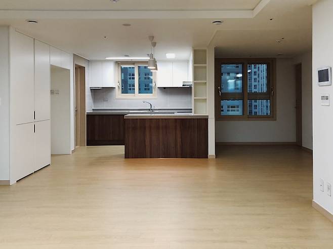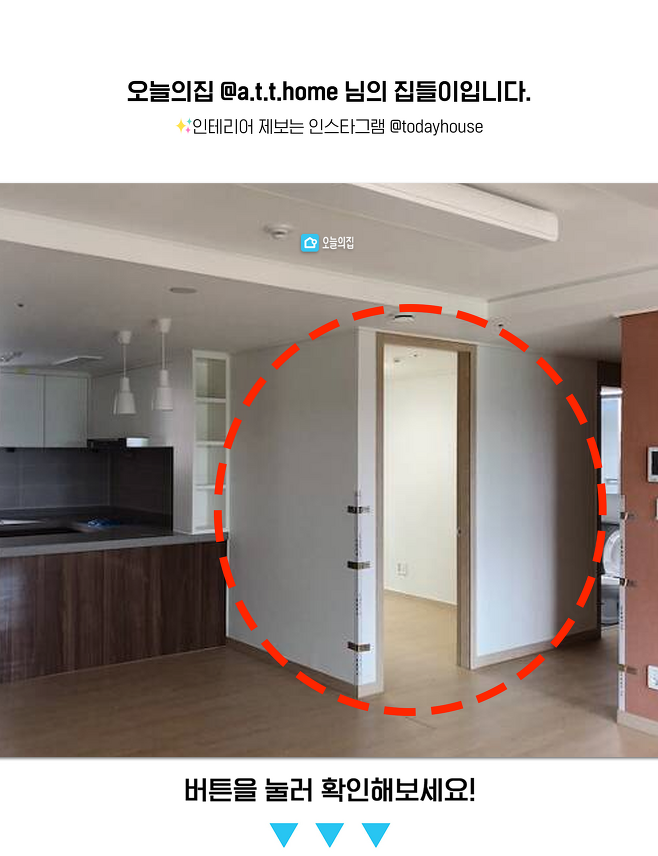 입주 당시에 알파룸으로 변경 가능한 방이 4개인 구조였는데, 방이 4개인 대신에 주방 앞쪽과 거실이 답답하게 느껴져 과감히 가벽을 철거하는 부분 공사를 진행했어요. 벽을 허무니 공간이 많이 확보되면서 훨씬 넓어보여 만족스러운 공사였습니다.