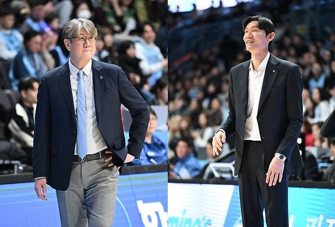 사진 설명 = 왼쪽부터 손창환 소노 감독-김주성 DB 감독