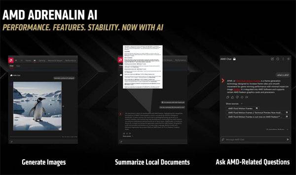또한 텍스트 요약 및 이미지 생성과 같은 일부 AI 기반 도구가 Adrenalin AI 소프트웨어 제품군에 통합된다. 해당 기능이 GPU 드라이버 패키지의 일부로 통합되는지 별도 애플리케이션이 될지는 확실치 않은 상황이다.