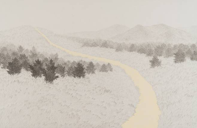 한 붓 한 붓 집중하여 풀잎 하나하나에 깃든 바람을 그려낸다. 바람이 풀을 스치듯 붓이 종이를 스쳐 그 흔적을 드러낸다. 연한 먹점이 차곡차곡 쌓아 올려질 때마다 바람의 거대한 움직임을 기억한다.