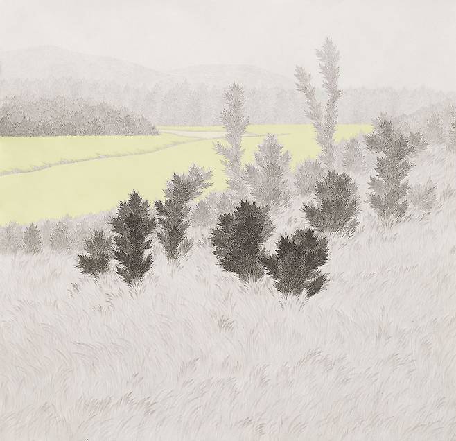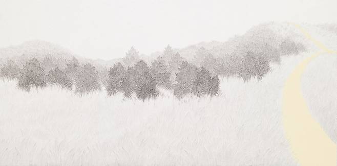 한 붓 한 붓 집중하여 풀잎 하나하나에 깃든 바람을 그려낸다. 바람이 풀을 스치듯 붓이 종이를 스쳐 그 흔적을 드러낸다. 연한 먹점이 차곡차곡 쌓아 올려질 때마다 바람의 거대한 움직임을 기억한다.