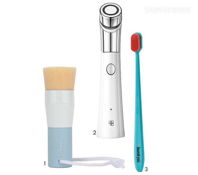 1 필리밀리 솜털 세안 모공 브러시 촘촘한 미세모가 모공과 주름 사이에 남아 있는 노폐물과 메이크업 잔여물을 딥 클렌징하는 데 도움을 준다. 1만5백원.