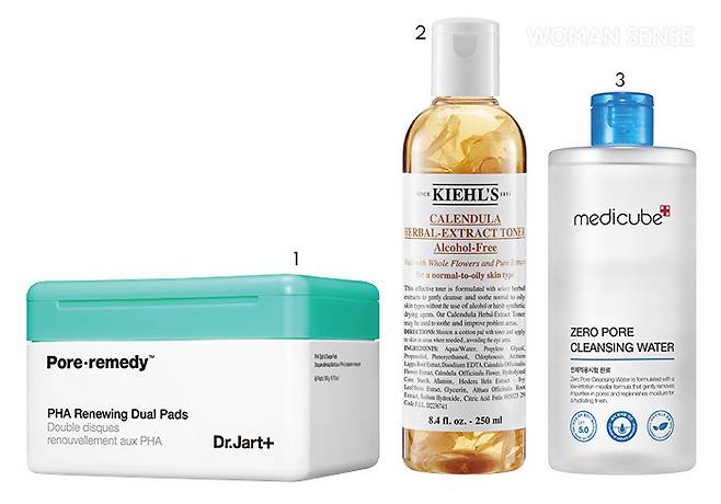1 닥터자르트 포어레미디™ 파하 리뉴잉 듀얼 패드 100% 순면 패드의 7% PHA 성분이 모공 속 노폐물과 주변 각질을 깨끗하게 닦아내기 좋다. 60매 3만5천원.