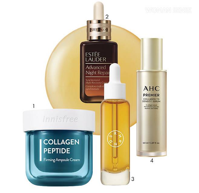 1 이니스프리 콜라겐 펩타이드 탄력 앰플 크림 600억 청각 유래 유사 콜라겐과 8종 펩타이드 함유 포뮬러가 피부 속 탄력을 높이는 모공 집중 케어 크림. 50ml 3만9천원.