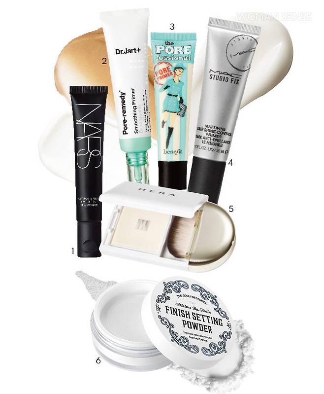 5 헤라 에어리 파우더 프라이머 전용 브러시로 피붓결을 따라 바르면 모공과 결을 매끈하게 커버할 수 있는 파우더 타입의 프라이머. 크림 바닐라 컬러가 투명한 피부는 물론 즉각적인 피부 톤업 효과까지 준다. 8.5g 6만원.