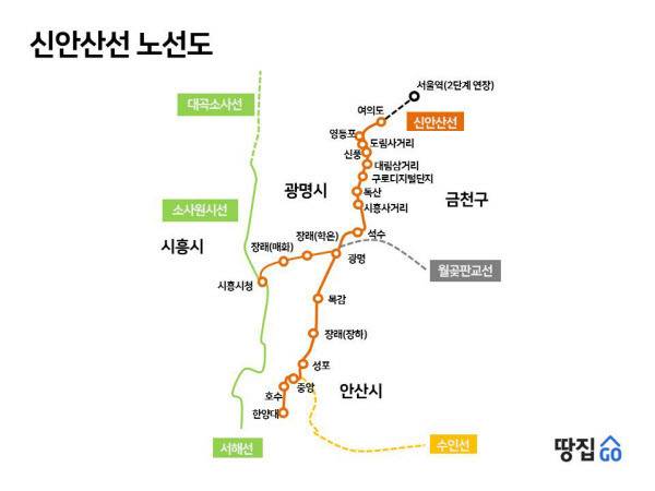 신안산선은 경기 안산·시흥에서 여의도를 잇는 44.7㎞ 길이의 ‘Y자’ 모양 노선이다. 여의도에서 출발해 광명역을 분기점으로 한양대 에리카 캠퍼스로 이어지는 노선과 시흥시청을 경유해 초지·원시·국제테마파크로 이어지는 노선으로 나뉜다. 총 19개 역사를 거치며 전체 사업비는 3조 3465억원에 달한다. 신안산선을 이용하면 안산에서 여의도까지 이동 시간이 기존 100분에서 25분까지 단축된다.