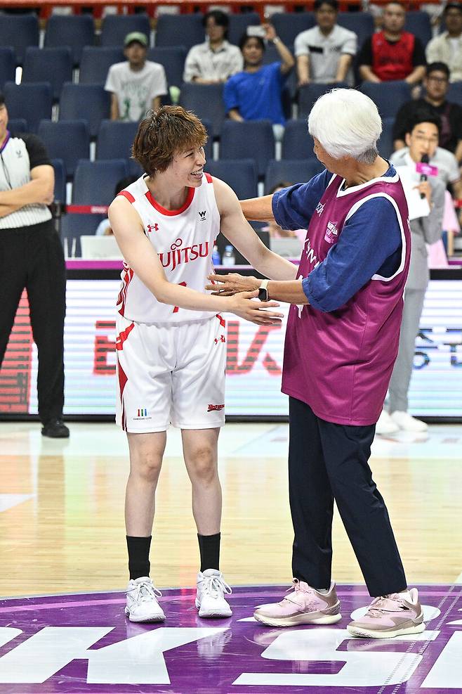 뜻깊은 농구화를 선물 받은 박신자 여사도 만족했다. 시투 후 만나 "이런 농구화는 처음 신어본다(웃음). 너무 마음에 든다"며 웃었다.
