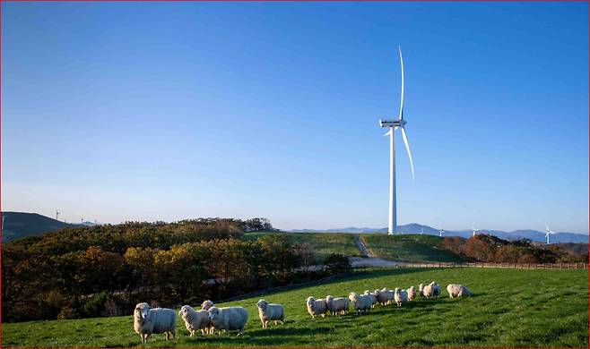 삼양라운드힐은 해발 850~1,470m 고산지대에 자리해 공해 없는 청정 자연을 자랑합니다. 무려 600만 평 규모로, 그 안에서 동물들이 자유롭게 뛰놀고 풍력발전기가 웅장한 자태를 뽐내고 있지요.
