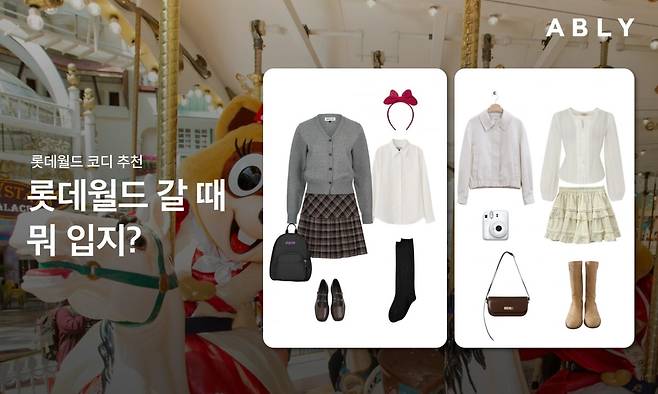 에이블리에 따르면 2월 에이블리 내 ‘롯데월드 코디’ 검색량은 전년 동기 대비 약 40% 증가했다. ‘롯데월드 치마’(32%) ‘롯데월드 룩’(20%)도 검색이 늘었다. 에이블리는 ‘회전목마 룩’, ‘매직캐슬 룩’ 등 롯데월드 어드벤처 내에 위치한 포토존별 코디까지 콘텐츠로 제시했다. 심지어 ‘후렌치레볼루션 룩’, ‘자이로드롭 룩’ 등 어트랙션별 코디까지 내놨다. 의류 상품뿐 아니라, 함께 코디하기 좋은 가방, 신발, 머리띠 등 잡화 상품까지 함께 보도록 했다. 테마파크 패션을 패션 플랫폼에서 제시한 건 이번이 처음이다.