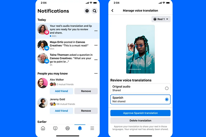 메타가 출시한 음성 더빙 기능은 AI가 사용자의 음성 번역을 지원, 립싱크를 추가해 자연스러운 더빙을 제공한다. 현재 영어에서 스페인어 간 번역만 지원한다.