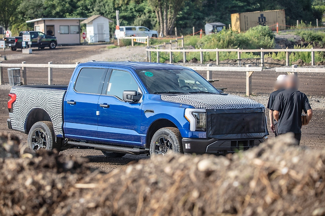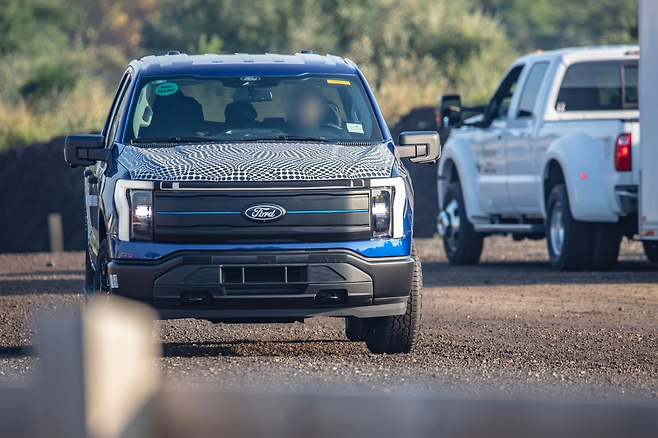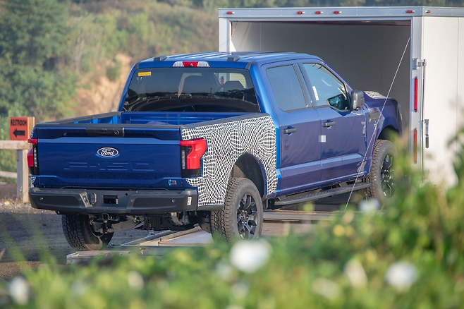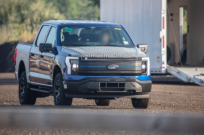 포드가 미국에서 흥미로운 F-150 라이트닝 프로토타입을 테스트하고 있는 모습이 포착돼 화제가 되고 있다. 기존 F-150 트레머의 오렌지 액센트 대신, 이번 오프로드 전기 픽업트럭은 전면 그릴에 수평 블루 스트립을 선명하게 적용한 것으로 확인됐다.