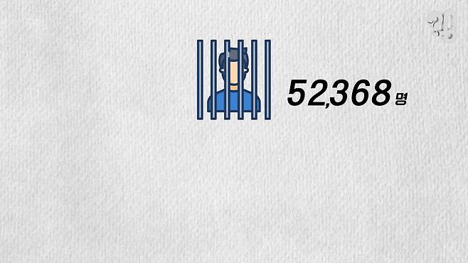 법무부가 1년에 한 번 내는 교정통계연보를 보면 2021년 기준 전체 교정시설의 하루 평균 수용인원은 5만2368명. 교도소에서 징역형을 사는 ‘수형자’ 그리고 형이 아직 확정되지 않은 ‘미결수’, 또 벌금을 낼 돈이 없어 일하며 감옥살이 중인 ‘노역장 유치자’를 합친 통계다.