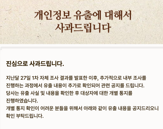 향후 계획도 덧붙였다. 관계자는 “고객님의 소중한 정보를 보다 철저하게 보호하지 못한 점에 대해 거듭 사과드린다”며 “사고 원인 규명을 위해 관계기관 조사에 성실히 임하고 있으며, 재발 방지를 위해 전사적으로 보안 강화에 총력을 다하고 있다”고 강조했다.