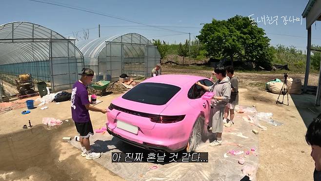 도색에는 일시적인 분홍색 페인트가 사용됐다. 검정색이던 차량은 순식간에 강렬한 핑크톤으로 바뀌었고, 강남은 장난을 마무리하며 차량을 이상화에게 공개했다.