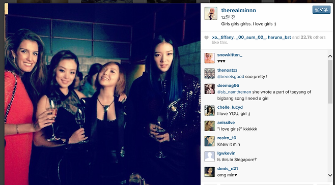 같은 그룹 멤버였던 지아와 페이가 참석해 민과 팔짱을 끼고 찍은 사진을 공개했다.