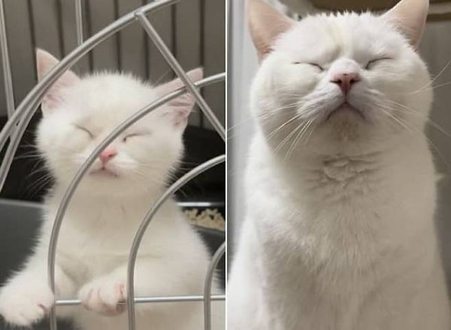 공개된 사진 속에는 3년 전 고양이가 어렸을 때 시절 모습과 3년 후 현재 폭풍 성장한 모습이 담겨 있었습니다.