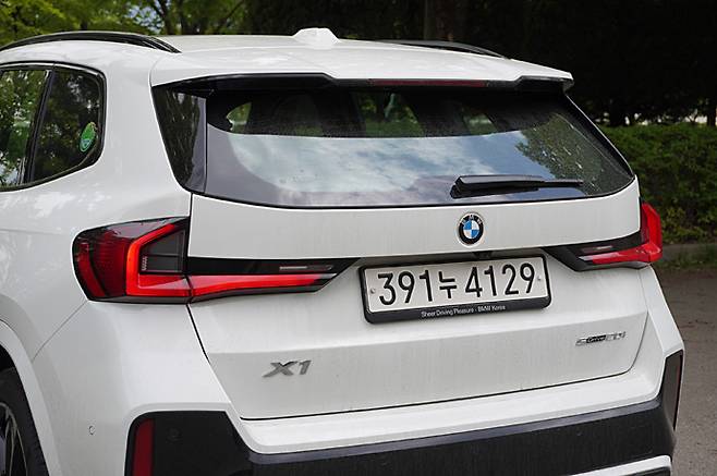 뒤쪽에서는 기능적인 면을 중시한 루프 일체형 스포일러의 직선이 이미지를 많이 바꾸고 있다. 가운데 테일램프는 더 가늘어졌지만, 아이콘인 L자형은 고수하고 있다. 범퍼 아래쪽에서는 원형 배기 파이프가 없어지고 각형의 그래픽만 남았다. 배터리 전기차 버전 iX1을 고려한 것으로 읽힌다.