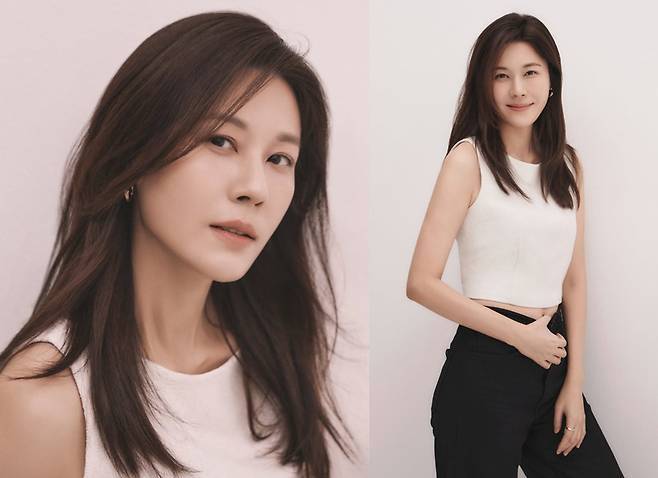 김하늘은 흰 민소매 탑에 데님 셔츠를 걸치거나, 심플한 흰 셔츠에 청바지를 매치하며 데일리한 스타일링만으로도 우아한 분위기를 뿜어냈습니다.