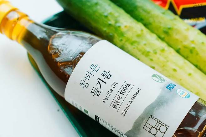 그 이유는 바로 들기름. 고소한 들기름이 오이의 비린 향을 잡아주고, 풍미를 한층 업그레이드시킨다.