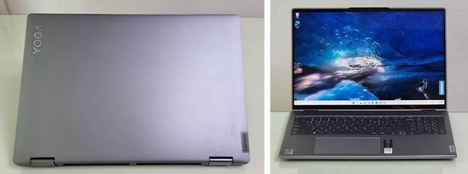 더불어 개인적으로 느낀 요가 7i의 단점은 무게다. 알루미늄 바디를 사용한 대형 노트북답게 무게는 어댑터를 빼고도 1.98kg에 달한다. 1kg급 경량 노트북 트렌드에 익숙해졌던 요즘 오랜만에 느낀 '묵직함'이었다. 앞서 언급한 대화면의 장점이 이동성에선 단점으로 바뀐 순간인데, 제품 거치보다 휴대가 잦은 사용자라면 확실히 마이너스가 될 수 있는 요소다.