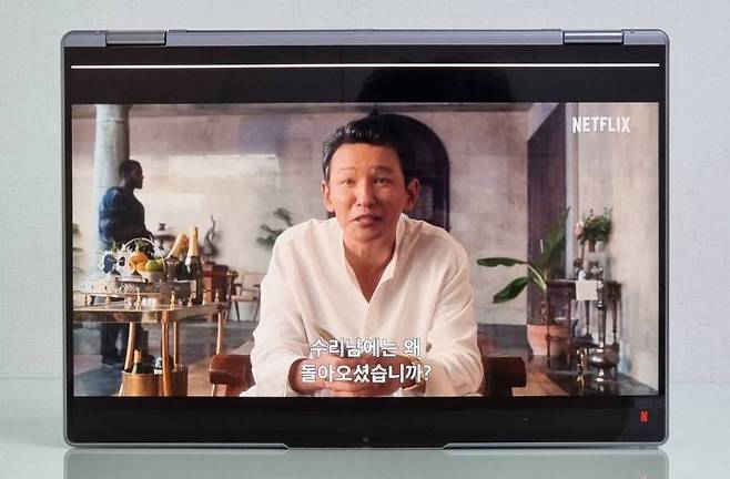 반면 하판을 깔끔하게 감출 수 있는 2in1 노트북이라면 이런 불편에서 해방이다. 영상 시청 중에는 오직 화면에만 집중할 수 있다. 그중 이번에 사용한 레노버 요가 7i는 화면도 일반 노트북(13인치)이나 태블릿(10~12인치)보다 훨씬 큰 16인치 모델로, 대화면이 영상의 몰입도를 훨씬 배가하는 느낌이었다.