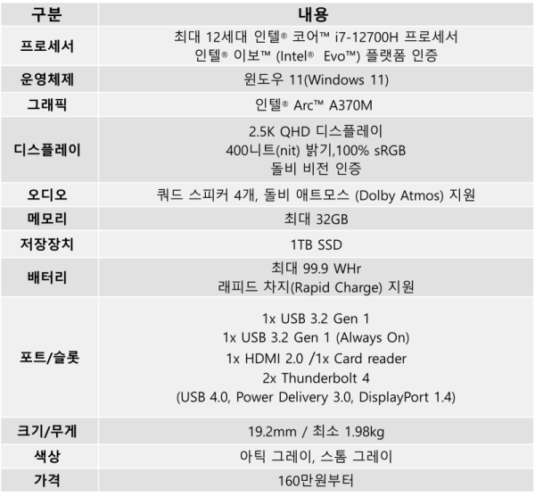 인텔 12세대 프로세서 탑재, 이보(Evo) 인증 획득