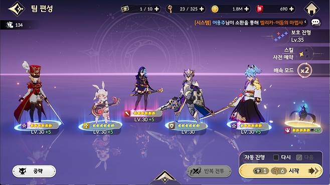 팀 편성 시 빠져선 안 되는 영웅은 '유이'다. 화상 면역과 회복, 부활을 갖춘 만큼, 불의 원소 던전에서 활약하기 좋다. 이외에 메인 딜러로 세인이나 쥬피, 레이첼을 이용하면 되고, 유지력에 힘을 실어줄 에반, 마지막 자리에 에이스를 편성하면 된다. 화상 스킬을 최우선으로 사용하고, 유이의 회복과 에반의 보호막으로 전투를 이어가면 클리어가 가능하다.