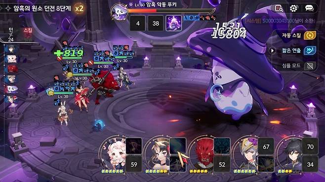 암흑의 원소 던전출혈 효과 적극 활용, 즉사 면역의 레오는 필수 ‘암흑의 원소 던전’ 공략의 핵심은 즉사 면역과 출혈이다. ‘암흑 악동 푸키’는 100% 확률로 즉사 효과를 부여하는 단일 스킬을 사용하므로, 즉사 면역 효과를 지닌 레오가 반드시 필요하다. 또한 출혈이 약점인 보스이기 때문에 출혈 효과를 보유한 딜러를 편성해야 한다. 레오는 즉사 면역과 출혈을 동시에 수행할 수 있어, 이 던전에서 빠질 수 없는 핵심 영웅이다.
