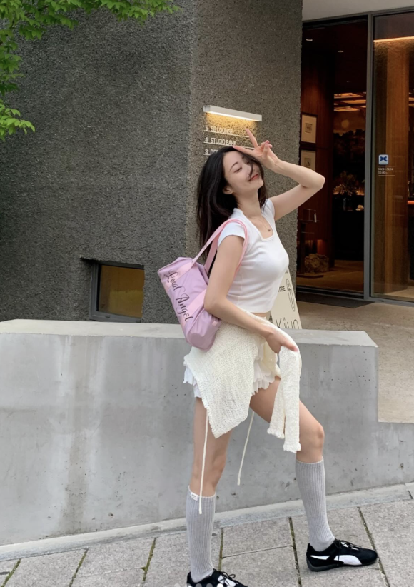경리의 피드 속 여름 스타일이 화제를 모으며, 그녀가 착용한 보트넥 티셔츠가 많은 관심을 받고 있다.