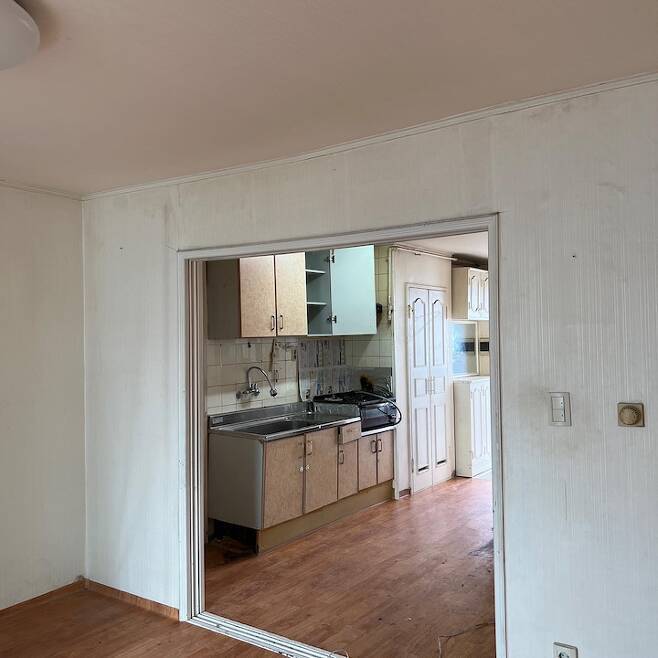 또 하나 신경 쓴 부분은 주방과 큰 방 사이에 따로 가벽을 만들어 준 부분인데요. 공간은 확실하게 분리해주면서도 원래 천장에 있던 가벽은 철거해 전체적으로 전보다 넓어 보이게 만들 수 있었어요.