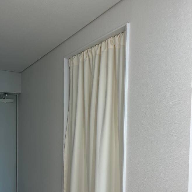 정말 많이 고민하다가 어차피 방음부스에 달린 문이 별도로 있으니 이 문만 가려주면 될 것 같아 문 대신 커튼을 설치하기로 했어요. 완성된 모습을 보면 커튼이 또 하나의 인테리어 포인트가 되어주는 것 같아서 만족스러워요.