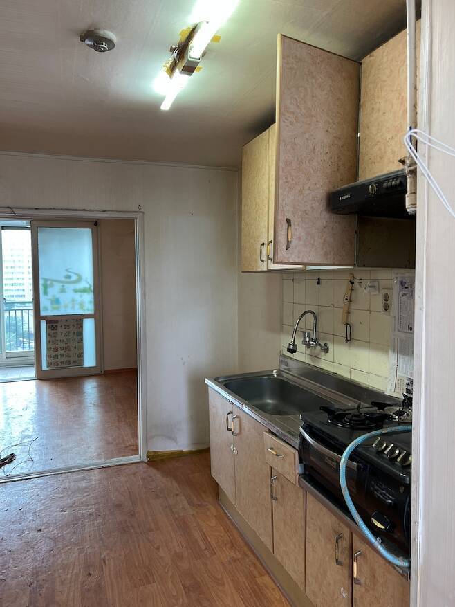 인테리어 전 주방의 모습은 참 처참(?)했어요. 오래되어 낡았다는 점도 문제였지만 좁은 공간 안에 눈길을 사로잡는 포인트들이 너무 많아 안 그래도 좁은 주방을 더 좁아 보이게 만들고 있었거든요.