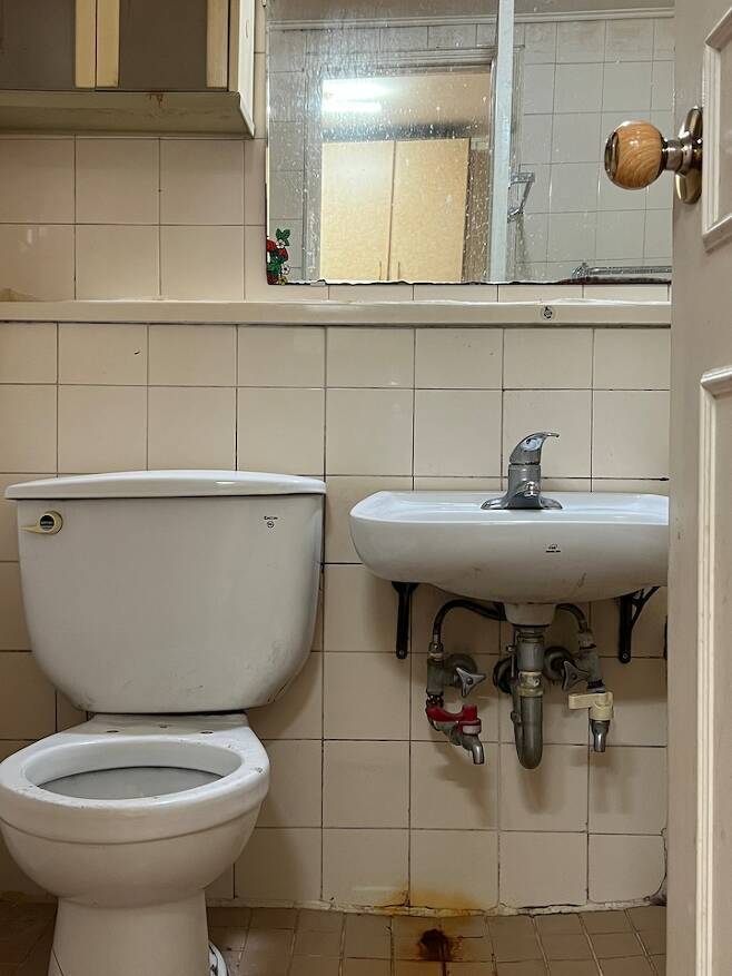 덕분에 남은 화장실 공간을 넓게 느껴지도록 만들 수 있었어요. 세면대 공간을 꾸미면서 거울과 세면대를 신경 써서 골랐어요. 빛이 잘 들어오지 않는 구석 공간이기 때문에 간접 등이 들어오는 거울을 골랐어요.