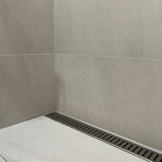 화장실의 벽과 바닥 타일은 같은 타일로 통일해서 화장실이 최대한 넓게 느껴지도록 했어요.