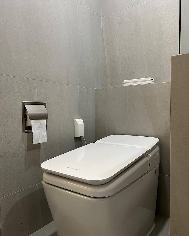 변기도 최대한 심플한 디자인으로 골랐고, 휴지 걸이는 매립형으로 설치해 최대한 깔끔하게 보이도록 연출했습니다.