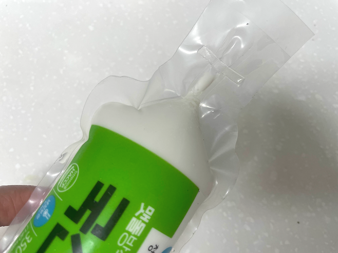 이럴 때 순두부 봉지에서 으깨짐 없이 꺼내는 간단 비법이 있어요. 일단 순두부 입구 부분을 살짝 잘라주세요.