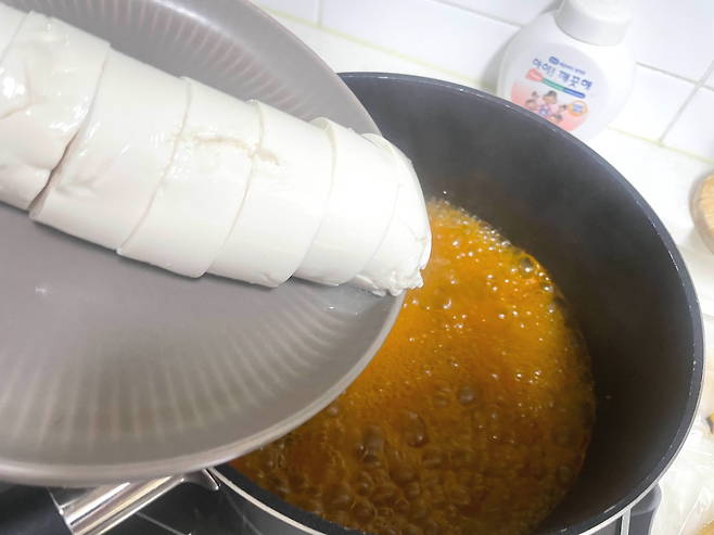 그러다 보니 봉지에서 꺼낼 때 으깨지기 쉽더라고요. 특히 순두부에 간장양념 쳐서 먹을 때는 으깨지면 맛이 없는데요