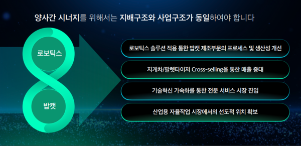 박 대표는 “시장에서 앞서가려면 플랫폼 정밀 제어, 비전 인식, 인공지능(AI) 등 기술 확보가 필수”라며 “글로벌 협동로봇 기업인 두산로보틱스와 시너지를 창출해 소프트웨어와 솔루션 개발 능력을 더하면 자율 작업 시장의 진입을 가속화할 수 있다”고 설명했다.