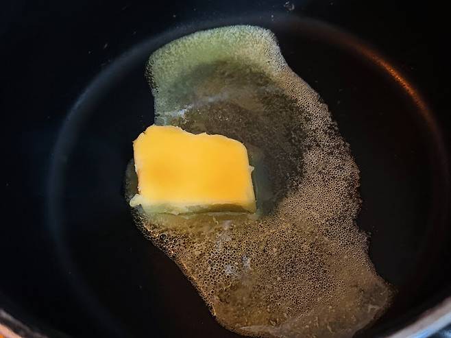 레스팅할 동안 작은 냄비에 버터를 녹여줍니다.