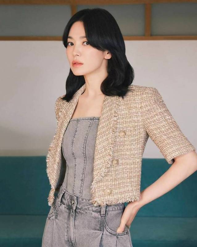 타이트한 톱에도 군살 하나 없이 잘록한 허리 라인을 유지하는 완벽한 자기 관리… 진짜 존경스러워. 👏 40대 중반이라는 게 믿기지 않는 동안 비주얼은 물론, 데님 룩마저 우아하게 소화하는 클래스! 💯 역시 송혜교 is 뭔들! ✨