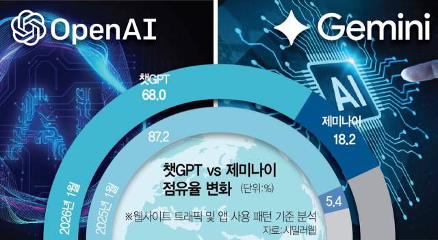 챗봇 시장에서 선두 싸움을 벌여온 구글과 오픈AI 사이에서도 희비가 엇갈렸다. 챗GPT 등장에 위기감을 느낀 구글이 제미나이의 전신인 ‘바드’를 내놓았지만 애플은 2024년 시리에 탑재할 AI 챗봇으로 챗GPT를 선택했다. 하지만 구글이 지난해 11월 제미나이 3를 출시한 뒤 처지가 뒤바뀌었다. 챗GPT가 오픈소스 플랫폼 평가에서 제미나이에 1위 자리를 내주더니 애플까지 구글의 손을 들어주면서 챗GPT와 시리의 관계가 지속될지조차 불투명해졌다.