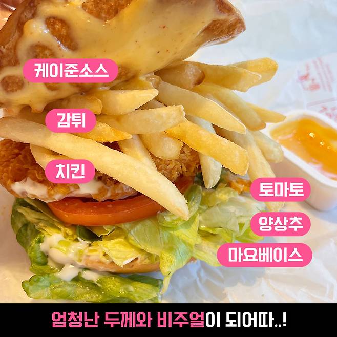와… 이거 진짜 뭐죠? 다 아는 맛인데, 합치니까 완전 색다른 버거가 돼서 놀랬어요ㅇ_ㅇ 치킨과 매콤한 케이준의 조화가 정말 조화롭고, 감튀에서 고소한 맛까지 올라와요. 요 비밀 레시피 인정!