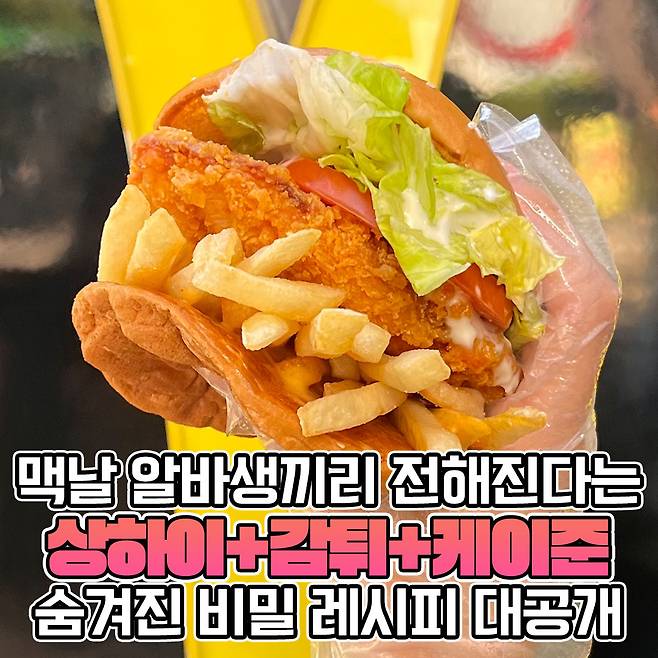 맥도날드 버거 TOP3 안에 꼭 든다는 맥스파이시 상하이버거! 밥심도 요 버거 참 좋아해요. 그런데 소문을 듣자하니… 맥스파이시 상하이버거의 비밀 레시피가 있대요! 그것도 알바생들끼리만 전해져 내려온다는 전설의 레시피.