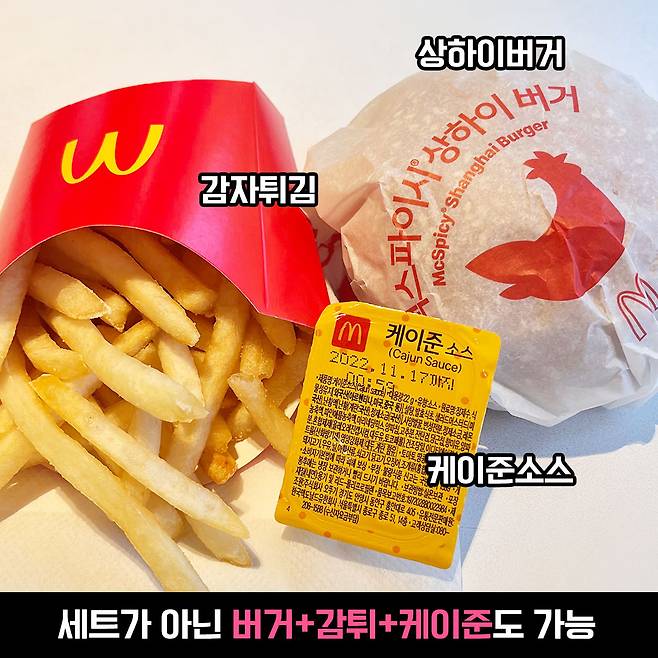 맥도날드 세트로 주문하는 이유는 감자튀김이 필요해서에요. 단품으로 주문하고 싶다면 단품+감자튀김 추가로도 가능해요!
