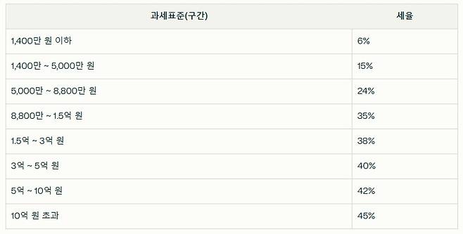 2025년 기준 세율표(2024년 소득분, 누진공제 포함)